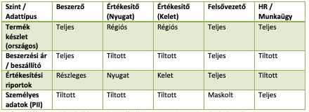 • Szerepkör-höz kötött – beszerzési árak, beszállítói SLA-k, margin mutatók